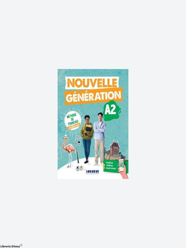 Nouvelle Génération A2 2022, una solución 'todo en uno' para aprender francés, diseñada para adolescentes avanzados, estudiantes y jóvenes adultos. Publicada por Didier en 2022, la colección abarca A1–B2. Este A2 fortalece gramática, vocabulario y pronunciación mediante secuencias en video, páginas culturales y una preparación al DELF a lo largo de las unidades. ISBN 9782278104093.